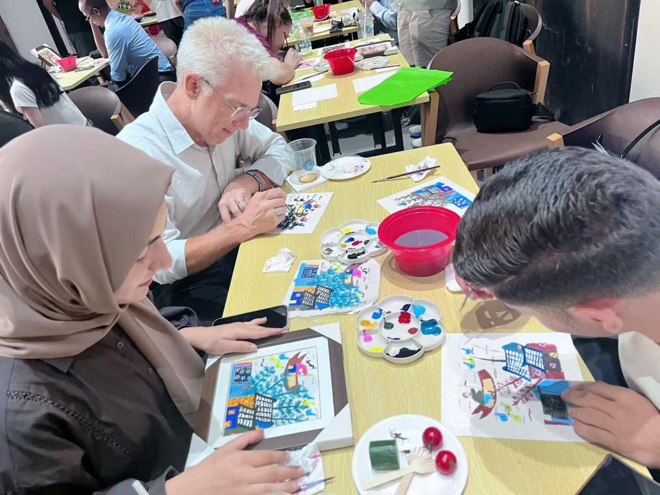 在金山农民画体验环节,在专业教师的悉心指导下,外籍师生执笔绘彩,亲身体验这一独具特色的民间艺术形式。活动现场还准备了状元糕等金山非遗茶点,让师生们在品味传统美食的过程中,进一步了解当地的饮食文化。